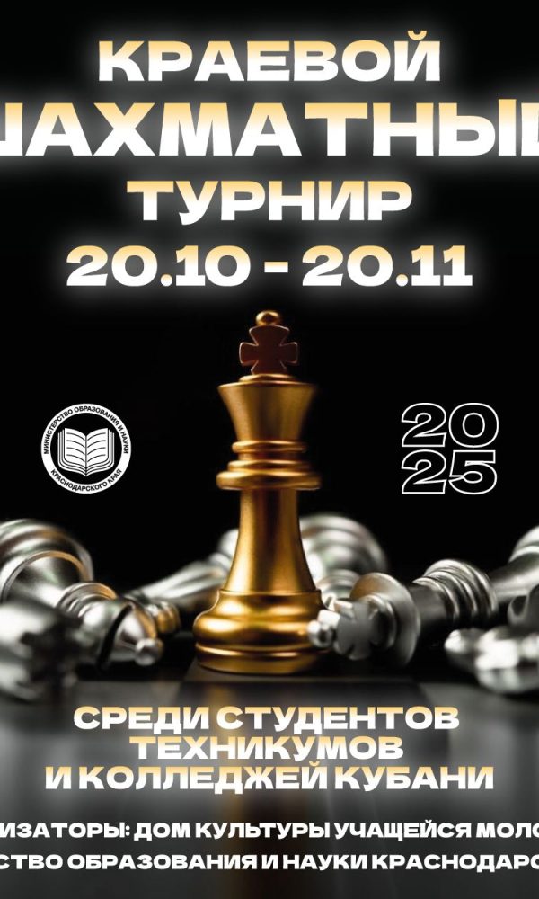 Друзья, у нас идёт активный приём заявок на краевой шахматный турнир! Соревнование проводится среди студентов профессиональных образовательных организаций Краснодарского края в 2 этапа: ✨отборочный территориальный между ... Читать далее